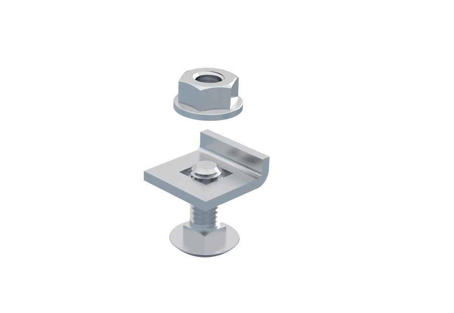 Clema prindere capac pentru canal cablu din sarma mesh SVM 1 Clema SVM 1 serveste la fixarea capacului pe jgheabul din sarma. Setul de imbinare consta dintr-o captuseala cu margine (E), un surub M6x16 si o piulita cu guler M6. Instalarea a 2 bucati de cleme se face la fiecare 100 cm de capac.