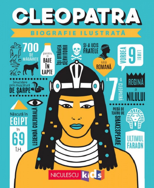 Colectia Biografie ilustrata descrie in culori vii vietile unor oameni extraordinari, prezentand intr-un mod nou si captivant peste 250 de intamplari fascinante. Poate ai aflat deja ca Cleopatra a fost regina Egiptului, dar stiai ca s-a casatorit cu fratele sau mai mic? Sau ca putea vorbi noua limbi? Aceasta relatare grafica a vietii ei le prezinta copiilor o imagine a lumii in care Cleopatra a crescut, oferindu-le in acelasi timp informatii educative despre aproape orice, de la romani la zodiacul egiptean. Ilustratii color de Matt Carr.