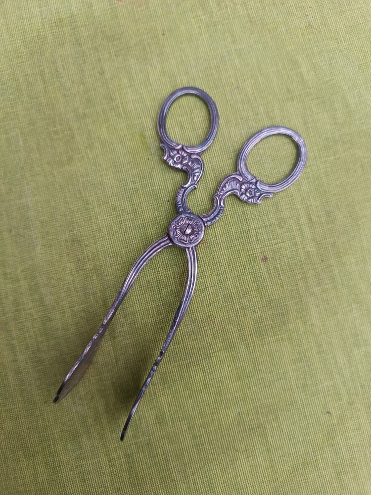 Este un cleste pentru cuburi de zahar, piesa de colectie din alpaca