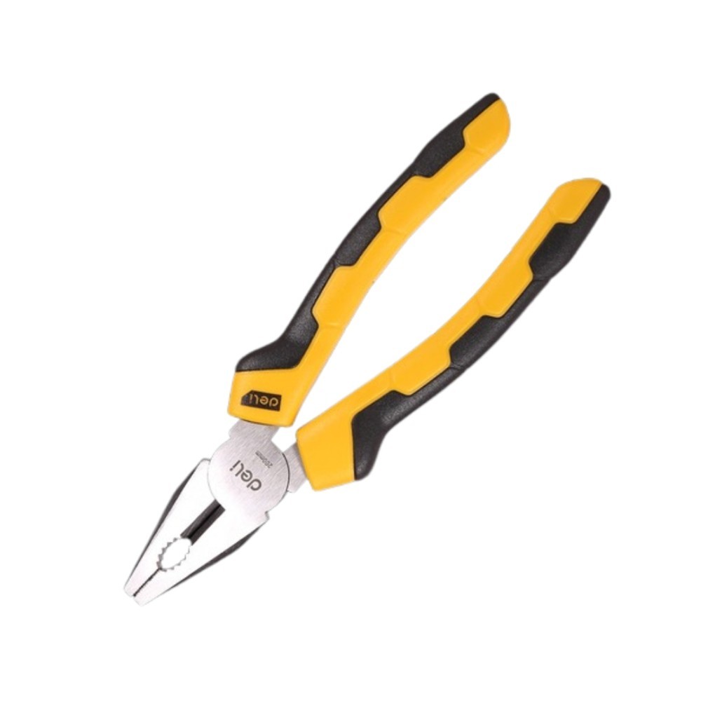 Cleste combinat, otel carbon, 20 cm, negru/galben Clestele universal sau asa-numitul cleste combinat este unul dintre cele mai populare instrumente. Datorita falcilor cu forma speciala, are mai multe functii. Finisajul plat poate fi folosit pentru tinere si zdrobire, iar muchia ascutita este buna pentru taiere si indoire. Greutate: 356,1 g Culoare: Galben Material: Otel carbon 55C Dimensiune: 20 cm