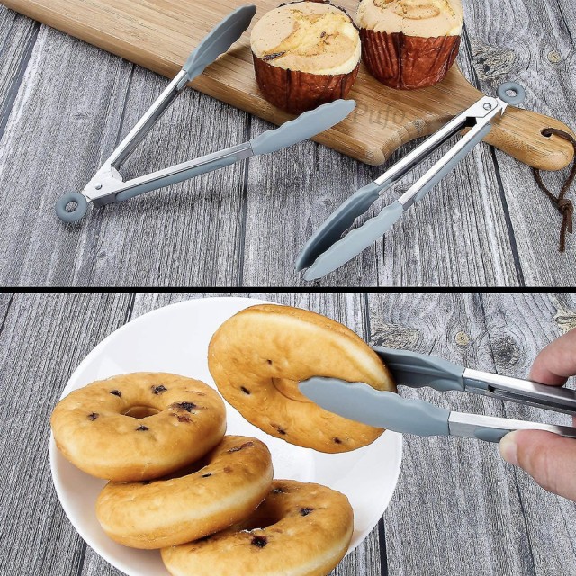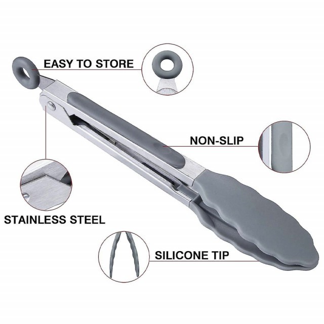 - Cleste de bucatarie cu varfuri din silicon, rezistenta la caldura, maner din otel