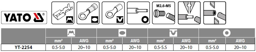 Cleste sertizat conectori 250 mm lama 4mm Yato YT-2254