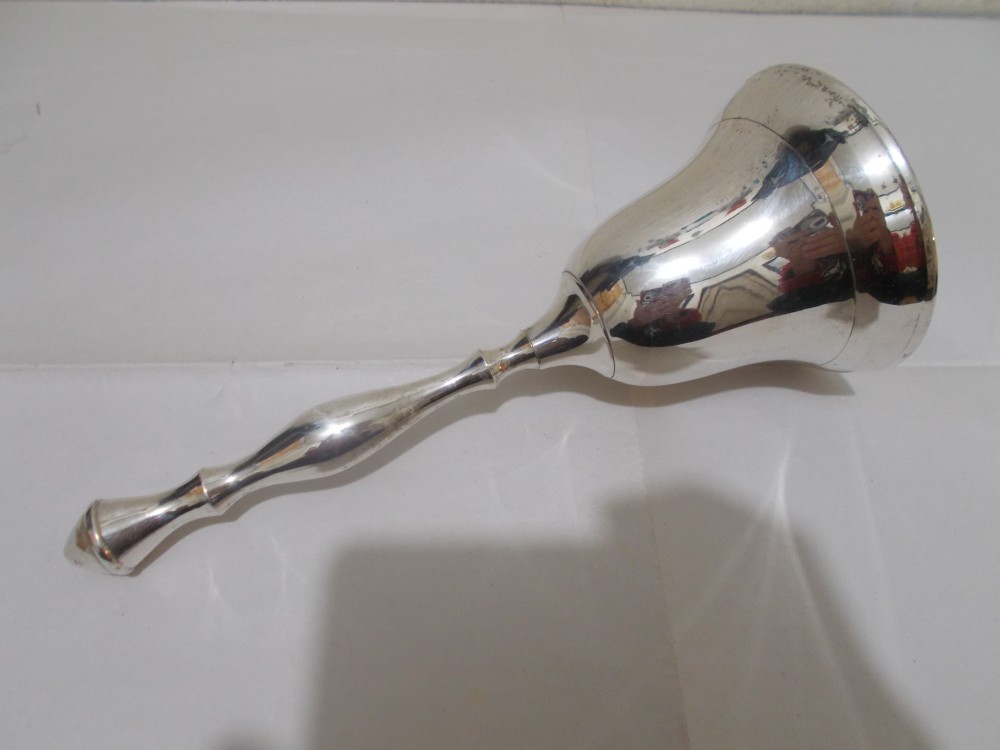 CLOPOT de masa ARGINTAT cu maner demontabil , 22,5 cm , marcat , clopot de mana
