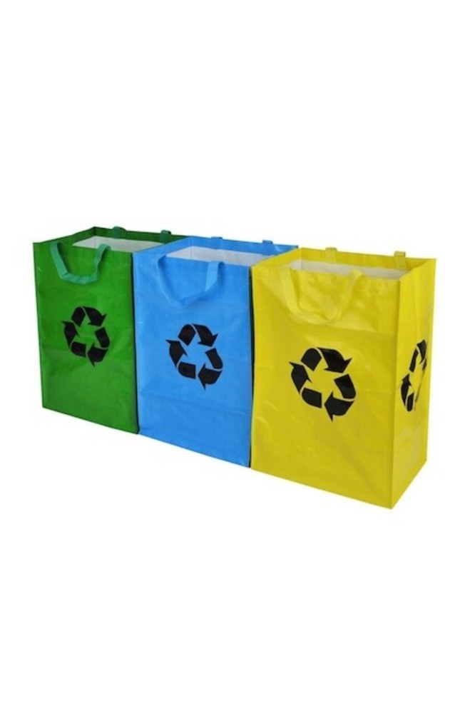 Setul de 3 coșuri de gunoi Delinia pentru colectarea selectivă a deșeurilor este soluția ideală pentru reciclarea deșeurilor.; Aceste trei saci de sortare sunt fabricați din material plastic durabil, sunt reutilizabili și ușor de transportat.; Culori diferite vă vor ajuta să separați deșeurile, contribuind la protejarea mediului printr-o reciclare corespunzătoare.; Fiecare coș este prevăzut cu mânere și are o capacitate de 50 de litri.