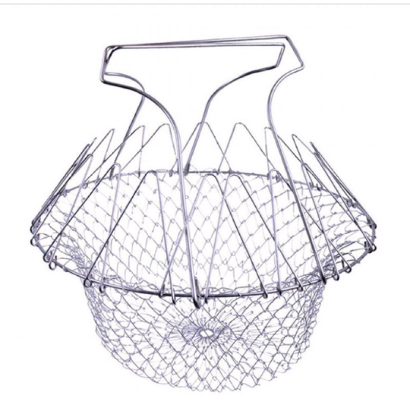 Anyaga: rozsdamentes acél A kosár átmérője: 22,5 cm Összecsukva