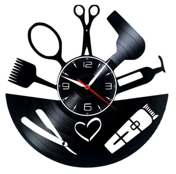 https://www.ceasul-bun.ro/wp-content/uploads/2025/07/untitled-video-made-with-clipchamp-2-1.mp4Redescoperă arta coafurii în fiecare minut cu acest ceas de perete extraordinar, creat manual dintr-un disc de vinil autentic. Un design captivant care celebrează instrumentele esențiale ale stilistului: foarfecă elegantă, uscător de păr în formă de L, pieptene precis, oglindă rotundă și accesorii de styling, toate aranjate artistic în jurul cadranului central.Cadranul negru minimalist, cu cifre moderne și distincte la orele 3, 6, 9 și 12, este completat de limbi de ceas subțiri, cu accentul vibrant al secundarului roșu care adaugă un detaliu cromatic perfect. Simbolul inimii delicat decupat în partea inferioară reprezintă pasiunea pentru această artă, iar instrumentele armonios dispuse transmit dinamismul și creativitatea specifice profesiei.Cu diametrul standard al unui disc de vinil, acest ceas devine imediat piesa centrală a oricărui salon de frumusețe sau studio de coafură. Contrastul puternic dintre negrul lucios al vinilului și designul decupat creează un efect vizual spectaculos pe orice perete.Perfect pentru:Saloane de coafură și academii de stilismCadou personalizat pentru stiliști și profesioniști în domeniul frumusețiiDecorarea spațiilor dedicate îngrijirii personaleColecționari de obiecte de design uniceFiind lucrat manual, fiecare ceas păstrează texturile și caracterul autentic al discului de vinil original, transformându-l într-o piesă de artă funcțională care nu doar măsoară timpul, ci și celebrează meșteșugul și creativitatea din spatele profesiei de stilist."