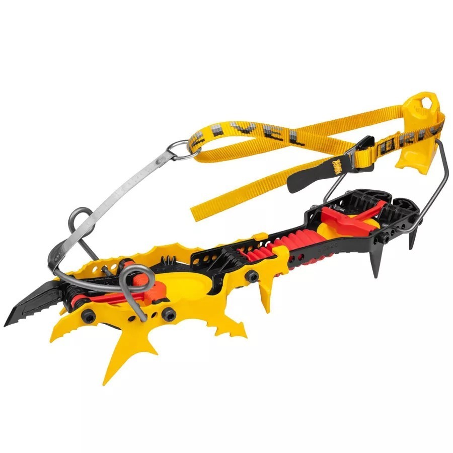 Grivel Rambo 4 – performanță maximă pentru alpinism tehnic pe gheață. Acești colțari ultra-tehnici sunt complet rigizi, cu un vârf frontal forjat 3D pentru o penetrare precisă și stabilitate excelentă pe gheață. Vârful se poate înlocui ușor cu un singur șurub. Sistemul Antibott Grivel față-spate previne acumularea zăpezii. Sistemul Cramp-O-Matic este utilizabil doar cu bocanci foarte rigizi, cu ramă la vârf și la călcâi. Se montează și se demontează rapid și are o fixare excelentă pe bocanc. Activități: cățărări pe gheață, dry-tooling Certificări: CE EN 893, UIAA 153 Mărimi: 38–48 Greutate: 1018 g/pereche Materiale: oțel, oțel forjat, plastic