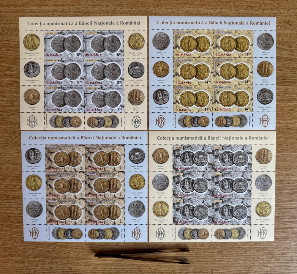 Colectia numismatica a Bancii Nationale a Romaniei, minicoala de 6 timbre si 6 viniete 2014 LP 2043C