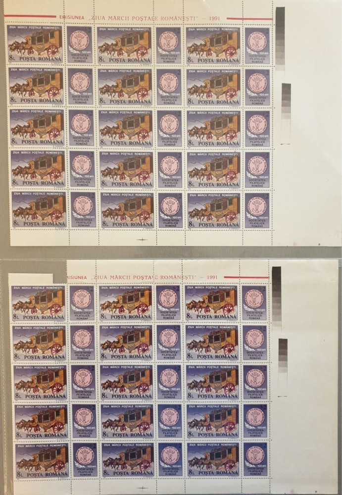 Colițe x2 filatelice complete „Ziua Mărcii Poștale Românești 1991” – 100 ani Societatea Filatelică Română