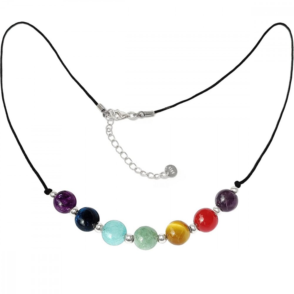 Colierul 7 chakre cu pietre semipretioase si argint 925, folosit pentru protecție și reducerea stresului, obtinerea echilibrului prin stimularea energiilor vindecatoare.