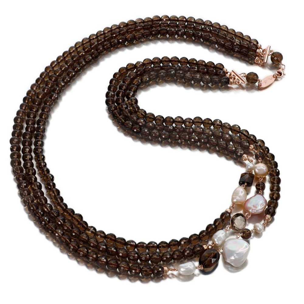 Colier Armonia din cuarț fumuriu și perle de cultură. Design artistic, manoperă excelentă. Nuanțele elegante și manopera excelentă fac ca această bijuterie să fie de o frumusețe unică. Lungime: 73 cm, cu sfere de 6 mm. Se poate compune set cu: Brățară Armonia din cuarț fumuriu și Cercei Armonia din cuarț fumuriu. Detalii produs: Argint 925/°°° placat cu aur roz, cu tratament antioxidant unic. Certificat de garanție a materialului. Cutie și pungă cadou incluse. Fiecare bijuterie este realizată manual, cu precizia inconfundabilă Made in Italy. Notă: Pot exista mici diferențe față de imaginea produsului, deoarece fiecare bijuterie este realizată manual, iar perlele sunt neuniforme. Culorile pietrelor semiprețioase poti fi diferi în funcție de reflexia luminii.