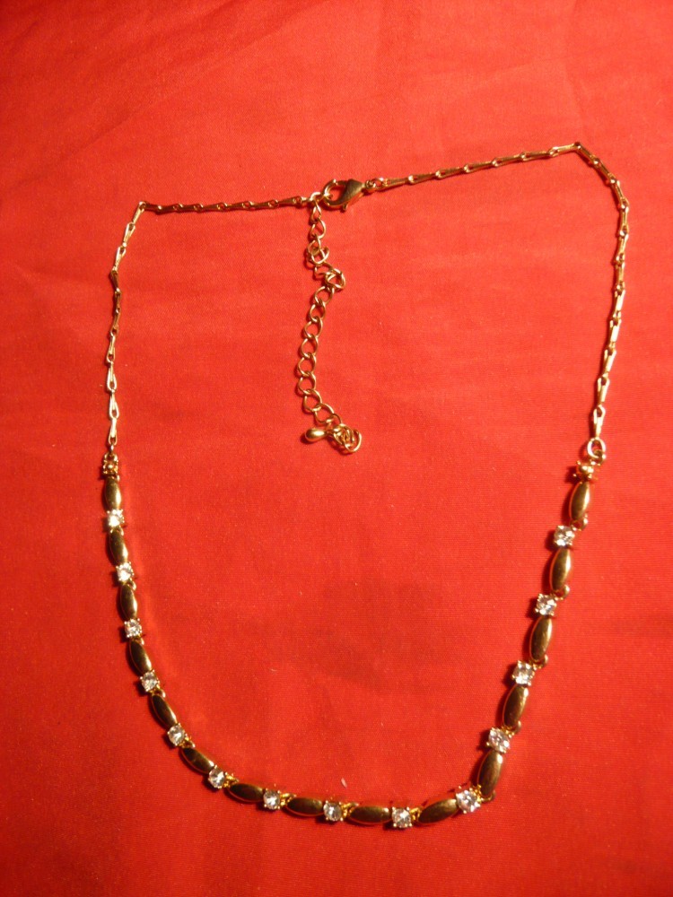 Colier cu pietre ,probabil metal aurit ,L=41,5 cm ( fara lantul rezerva)