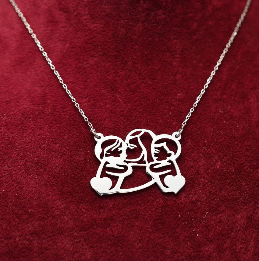 Colier Din Argint model Mama Cu 2 Copii in Brate Arg105A