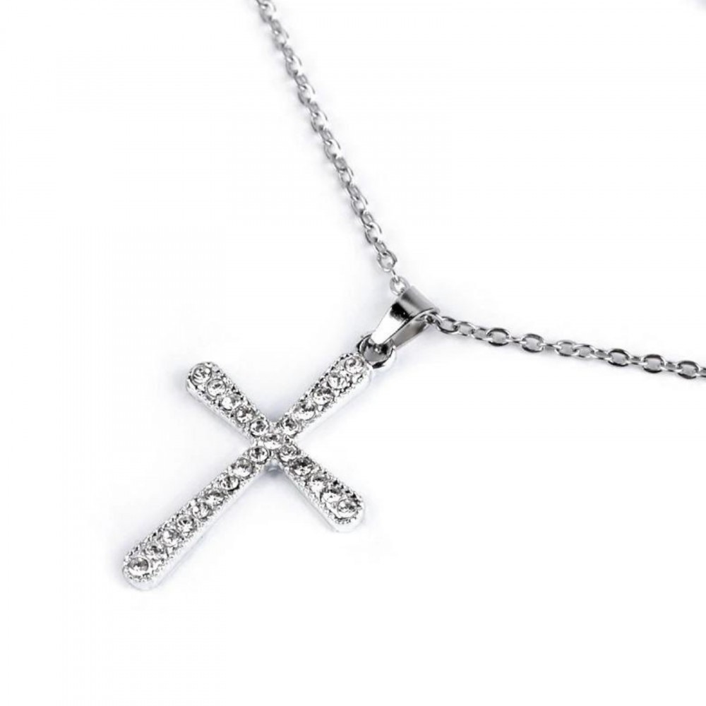 Colier din otel inoxidabil cu pandantiv cruce alba cu strasuri
