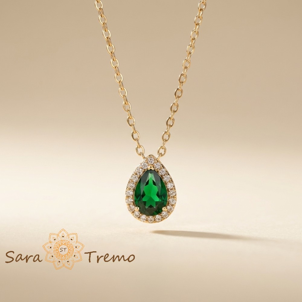 Colier Lacrima Smaraldului Regal , Colier placat cu aur cu pandantiv smarald