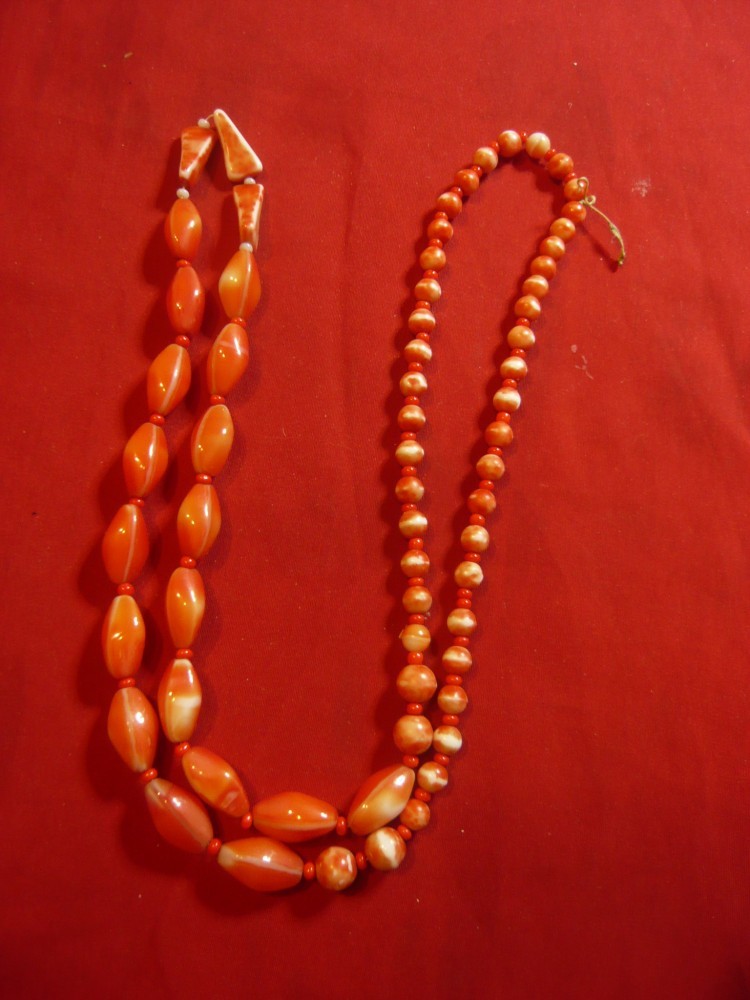 Colier margele corai si alb , L=37 (x2) cm - imitatie coral*