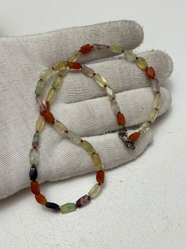 COLIER PIETRE SEMIPRETIOASE + ARGINT 925 - 44.5cm - Margele - Vintage !