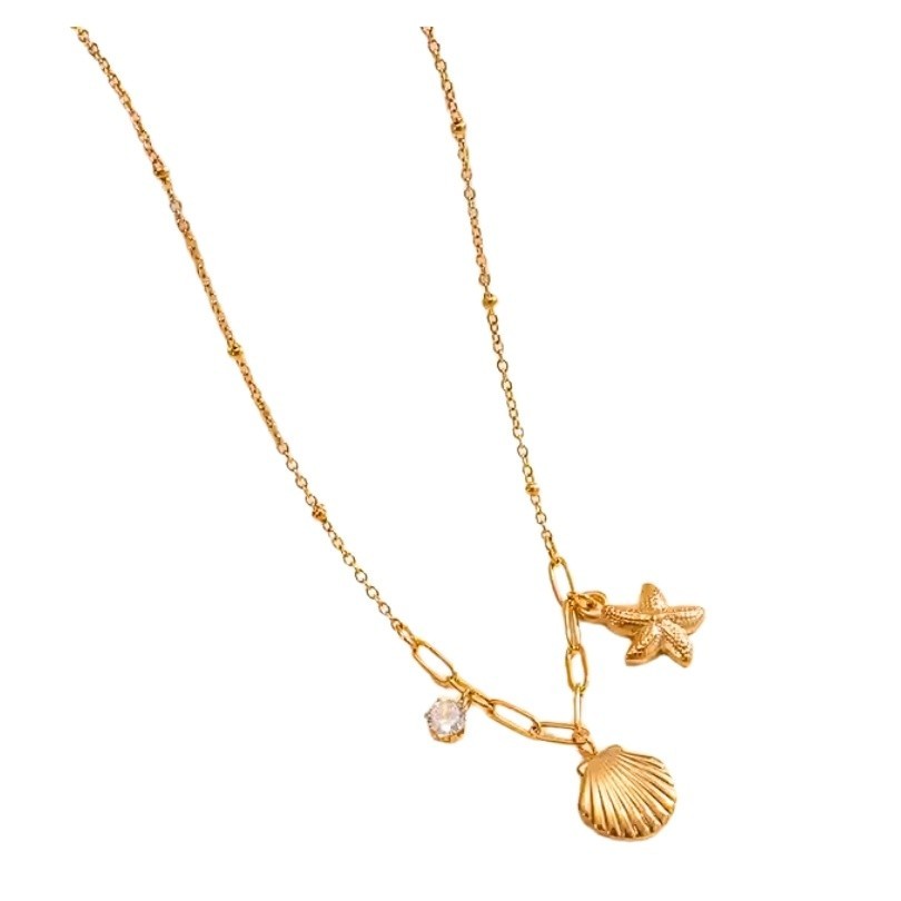 Colier placat cu aur steluta de mare si scoica un produs cu suflet, creat pentru cei care aleg conștient.