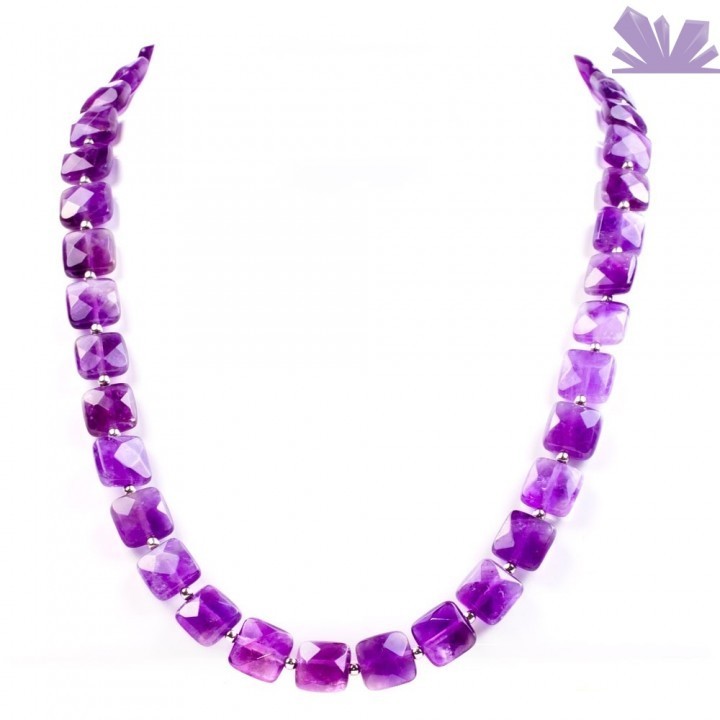 Colier realizat din pietre de ametist cu dimensiunea de 10 mm