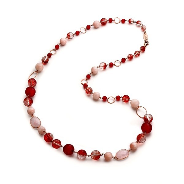 Colier Sunshine din cuarț roșu și jad roz. Lungime: 78 cm. Se poate compune set cu: Cercei Sunshine și Brățară Sunshine. Detalii produs: Argint 925/°°° placat cu aur roz, cu tratament antioxidant unic. Certificat de garanție a materialului. Cutie și pungă cadou incluse. Fiecare bijuterie este realizată manual, cu precizia inconfundabilă Made in Italy. Notă: Culorile pietrelor semiprețioase pot diferi în funcție de reflexia luminii.
