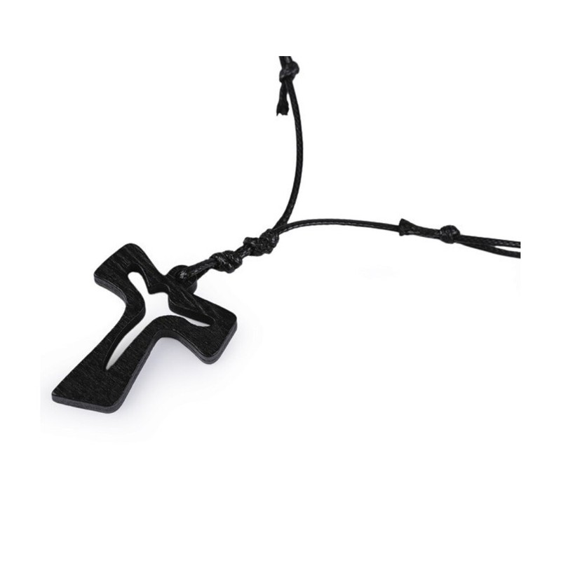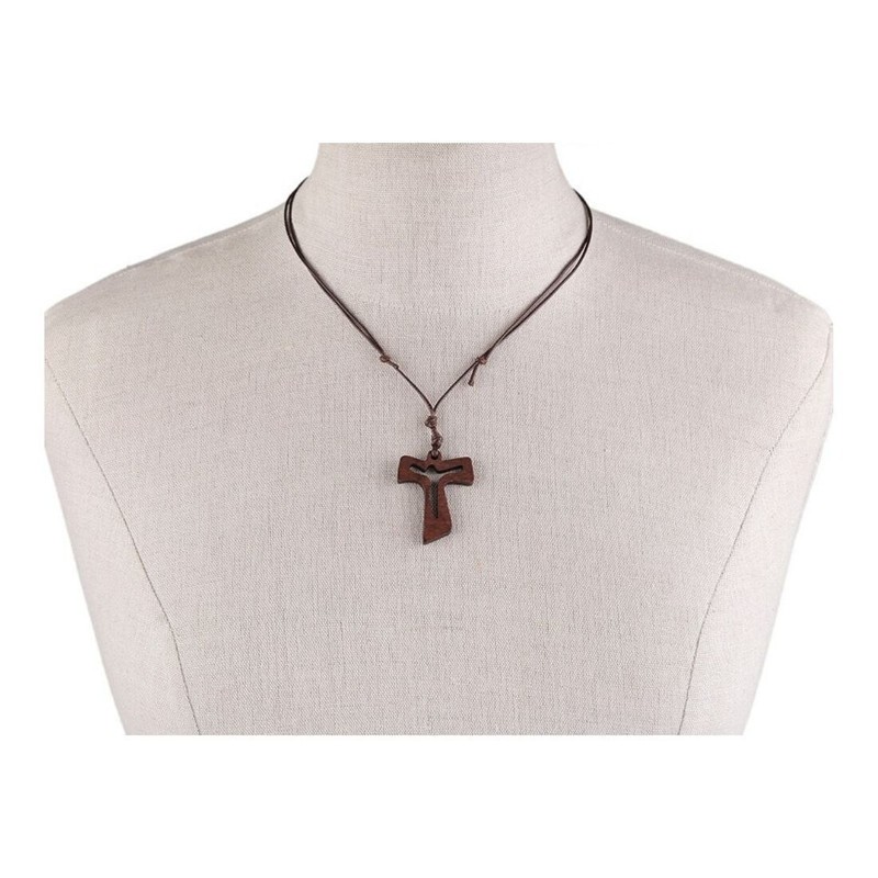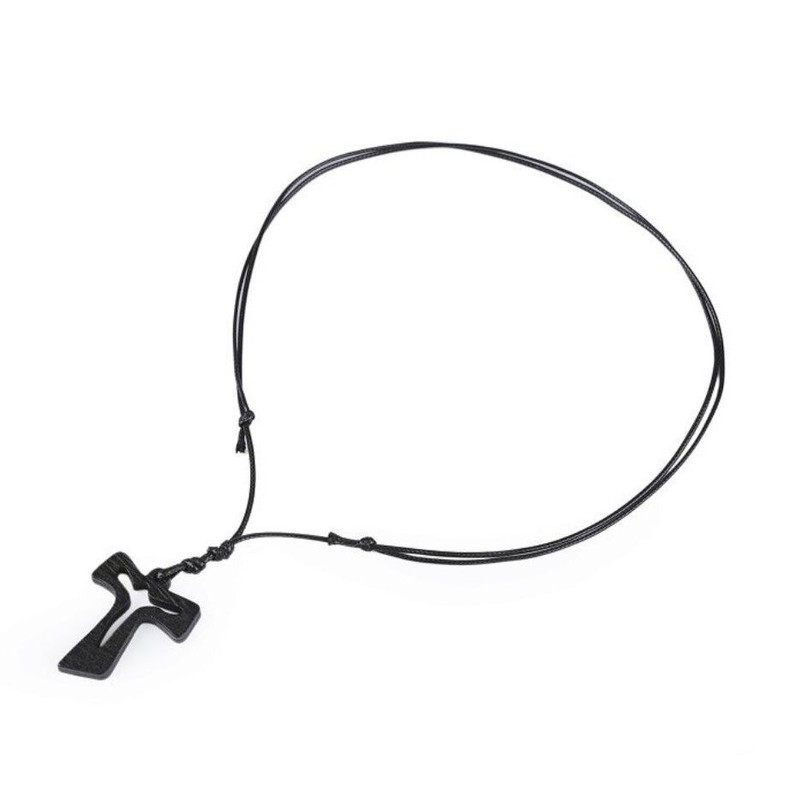 Colier unisex cu pandantiv cruce din lemn, reglabil, cu snur textil, marime universala, lungime 40–78 cm, simbol al credintei si stil natural
