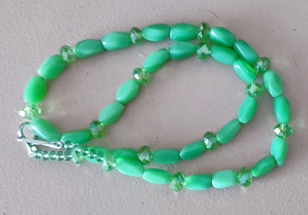 Colier anii 90, din aventurin si margele din sticla, foarte bine