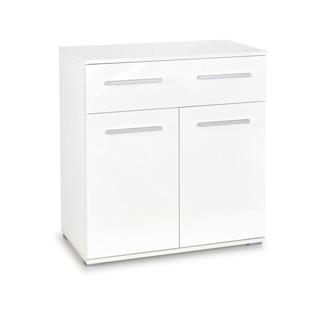 Comoda dormitor HM Lima KM1, Pal Melaminat, cu 2 usi, un sertar, cant ABS, alb