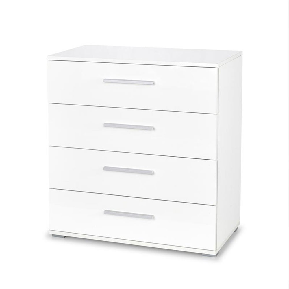 Comoda dormitor HM Lima KM3, Pal Melaminat, cu 4 sertare, cant ABS, alb