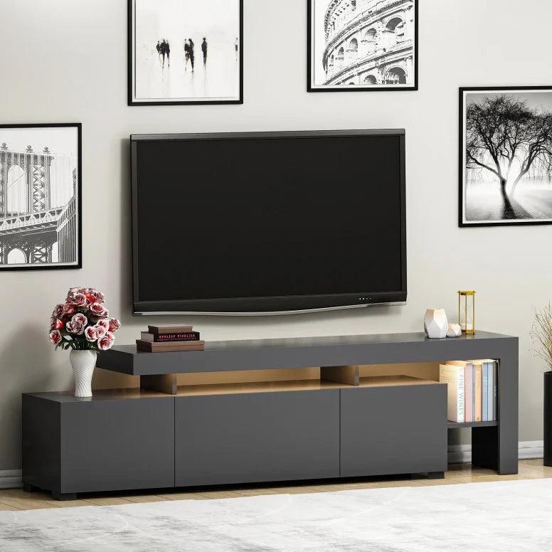 Comoda TV cu Led Beliz, Alb - Antracit - Nuc, 192 x 53 x 37 cm