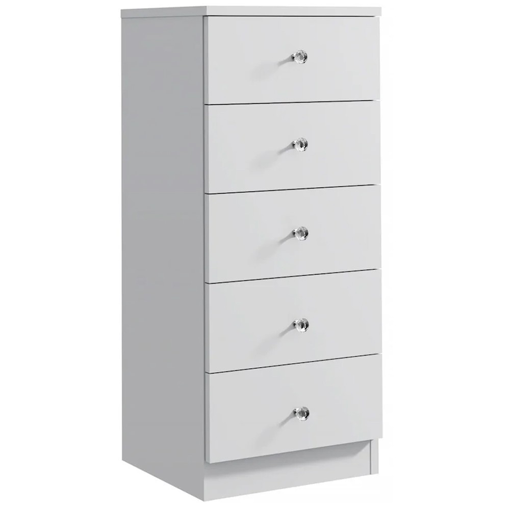 Comoda verticala Cristal cu 5 sertare, MDF, 40x38x94 cm, alb mat Household NewTrend