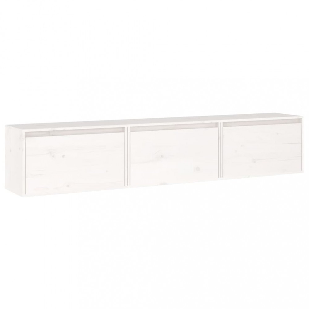 Comode TV, 3 buc., alb, lemn masiv de pin