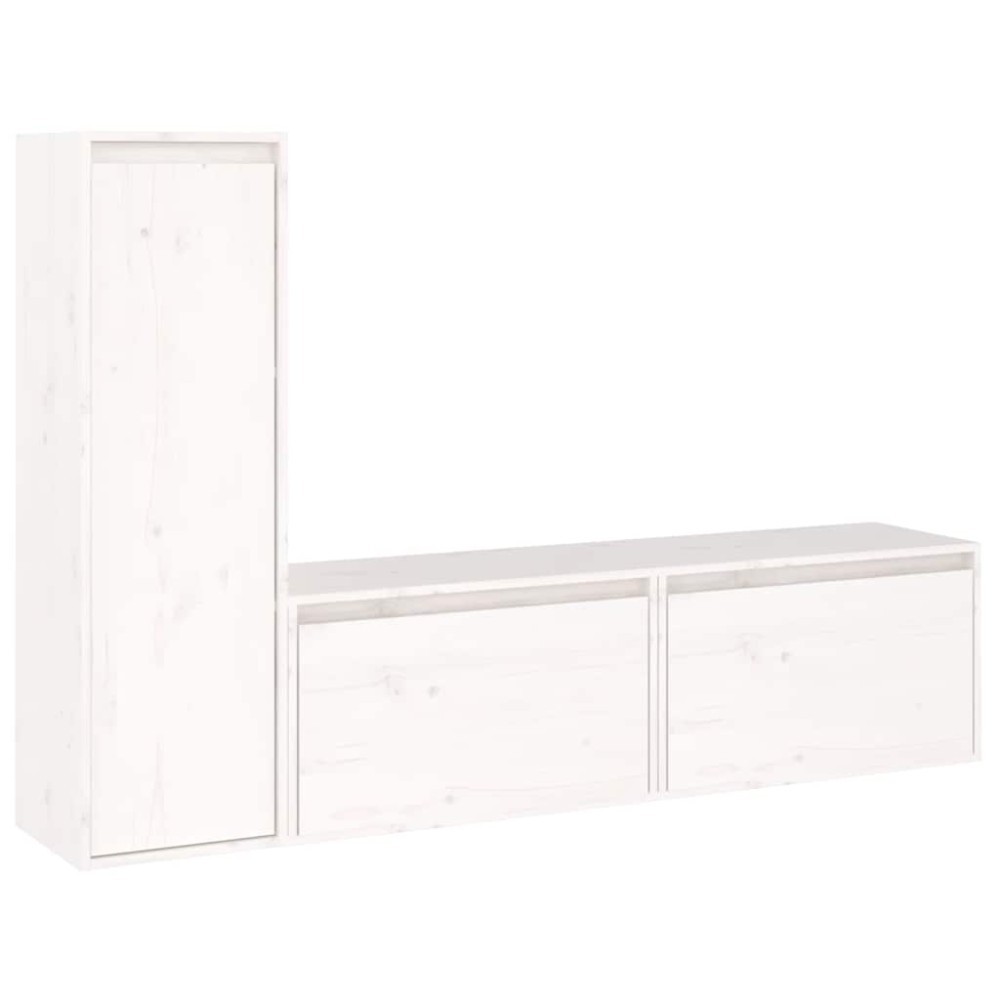 Comode TV, 3 buc., alb, lemn masiv de pin