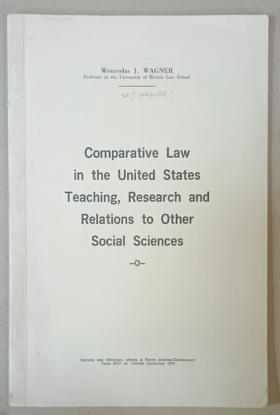 COMPARATIVE LAW IN THE UNITED STATES TEACHING , RESERACH AND RELATIONS TO OTHER SOCIAL SCIENCES by WENCESLAS J. WAGNER , 1973 , SUBLINIATA *