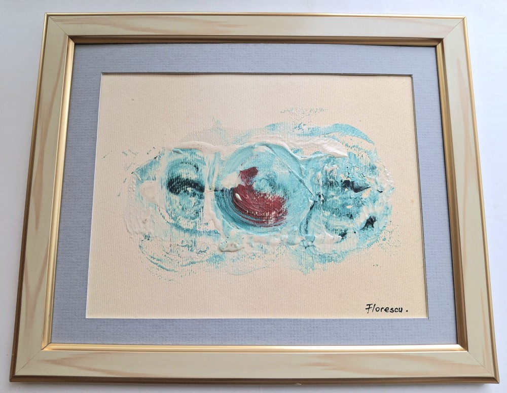 Pictura semnata Florescu – acrilic pe carton, incadrata intr-o rama cu dimensiuni exterioare de 23 x 28 cm, in stare buna. Compozitie realizata cu tusa sigura si armonie cromatica, specifica lucrarilor moderne de atelier.
