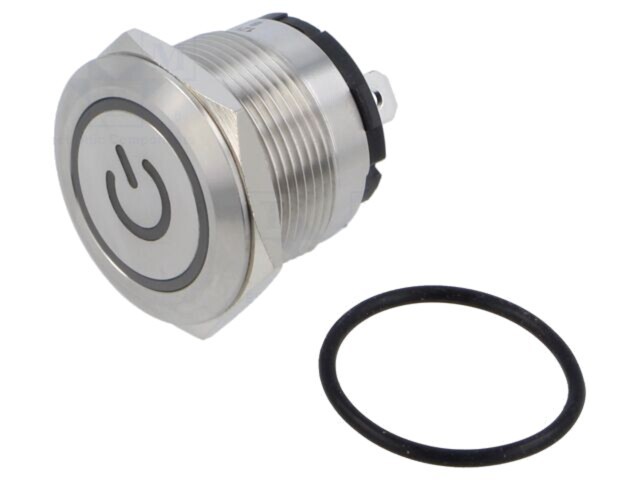 Comutatorul anti-vandalism E-SWITCH PVHC7 este proiectat pentru performanță și durabilitate superioară, oferind o configurare SPST cu două poziții stabile (OFF-ON). Carcasa metalică robustă și designul plat al butonului rotund asigură o rezistență mecanică de până la 500.000 cicluri, în timp ce durabilitatea electrică ajunge la 50.000 cicluri, garantând o funcționare fiabilă pe termen lung. Montarea pe panou se realizează în orificiu de Ø22 mm, acceptând panouri cu grosimea maximă de 6 mm. Pinul din argint și terminalele pentru lipit asigură o rezistență de contact maximă de 50 mΩ și o rezistență de izolație minimă de 0,1 GΩ. Clasa de etanșeitate IP67 protejează împotriva apei și prafului, conferind produsului o utilizare sigură în medii exigente. Iluminarea LED inelară albastră are o tensiune de alimentare de 12V și oferă un aspect modern și vizibilitate optimă. Forța de comutare este de 6N, iar cursa tastă măsoară 3,5 mm. Dimensiunile compacte ale corpului sunt Ø25 x 25,5 mm, iar marcare clară POWER completează funcționalitatea acestui comutator ideal pentru aplicații ce necesită un control robust și sigur. Temperatura de lucru variază între -40 și 85°C.