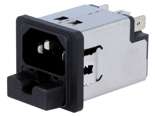 Conectorul SCHURTER C14 este ideal pentru aplicații ce necesită o alimentare AC sigură și fiabilă, respectând standardele internaționale IEC 60320. Designul snap-in permite o montare rapidă și sigură pe panou, iar construcția robustă asigură o durabilitate crescută în utilizare. Este compatibil cu siguranțe de dimensiuni 5x20mm, oferind protecție suplimentară, deși acestea nu sunt incluse.
