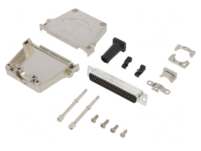 Carcasa robustă din aliaj de zinc cu acoperire nichelată garantează durabilitate și protecție suplimentară împotriva interferențelor electromagnetice. Conectorul este proiectat pentru montare pe cablu și asigură o fixare sigură prin filetul standard UNC 4-40. Ideal pentru aplicații industriale, echipamente de comunicații și sisteme de control.