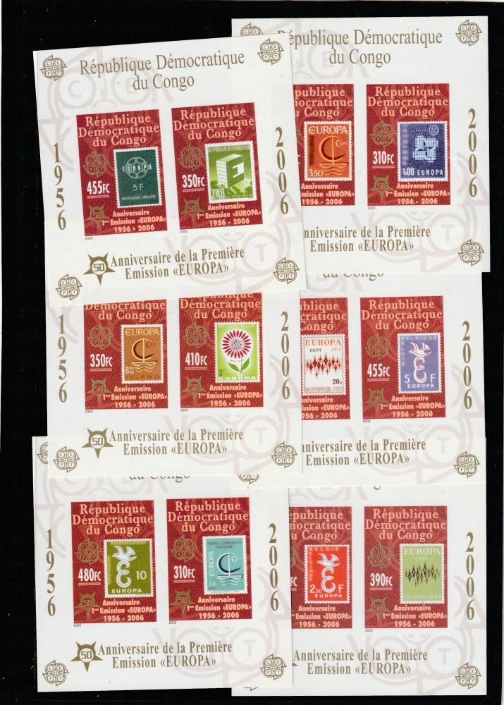 Congo (Rep. Dem.) 2005 - 50 ani Europa CEPT,6 bloc serie 12 valori nedantelate,MNH,Mi.Bl.249B-255B