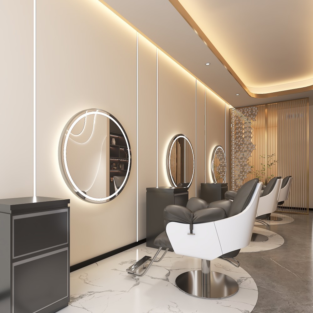 O oglindă mare împreună cu un panou LED vor fi apreciate de fiecare frizer pentru care contează confortul în timpul muncii.