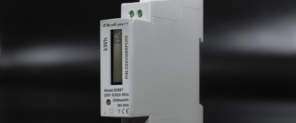 Contor electronic de energie monofazat Qoltec | Șină DIN | 230V | LCD | 1P | Subțire