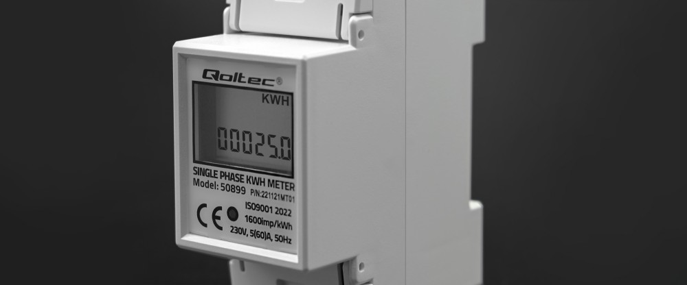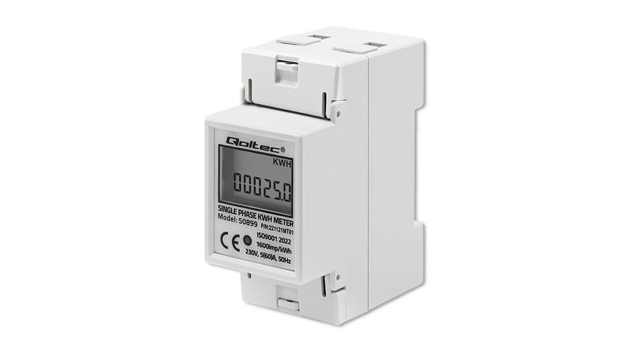 Contor electronic monofazat de consum de energie Qoltec | 230 V | LCD | 2P | Montare pe șină DIN
