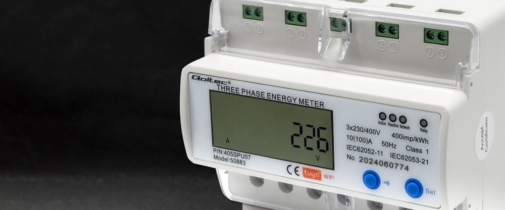 Contor electronic trifazat Qoltec | Contor de consum de energie montat pe șină DIN | 400V | LCD | Wi-Fi