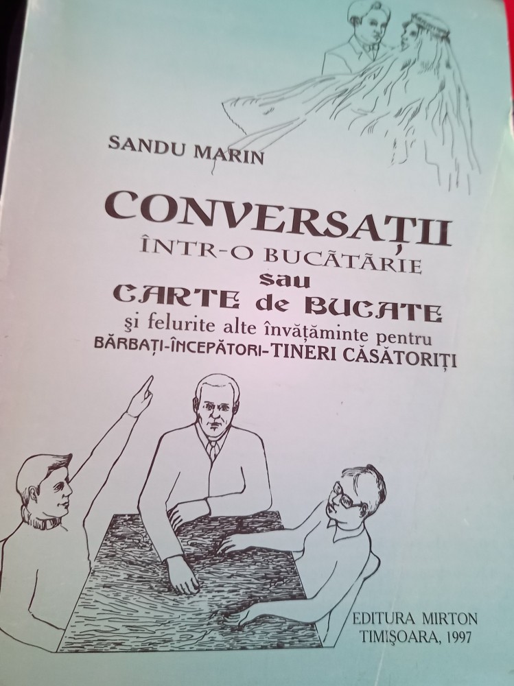 Conversatii intr-o bucatarie sau Carte de bucate si felurite alte invataminte pentru barbati-incepatori - tineri casatoriti////////////////Titlu Conversatii intr-o bucatarie sau Carte de bucate si felurite alte invataminte pentru barbati-incepatori - tineri casatoriti Autor Sandu Marin Editor Mirton, 1997 552 DE PAGINI