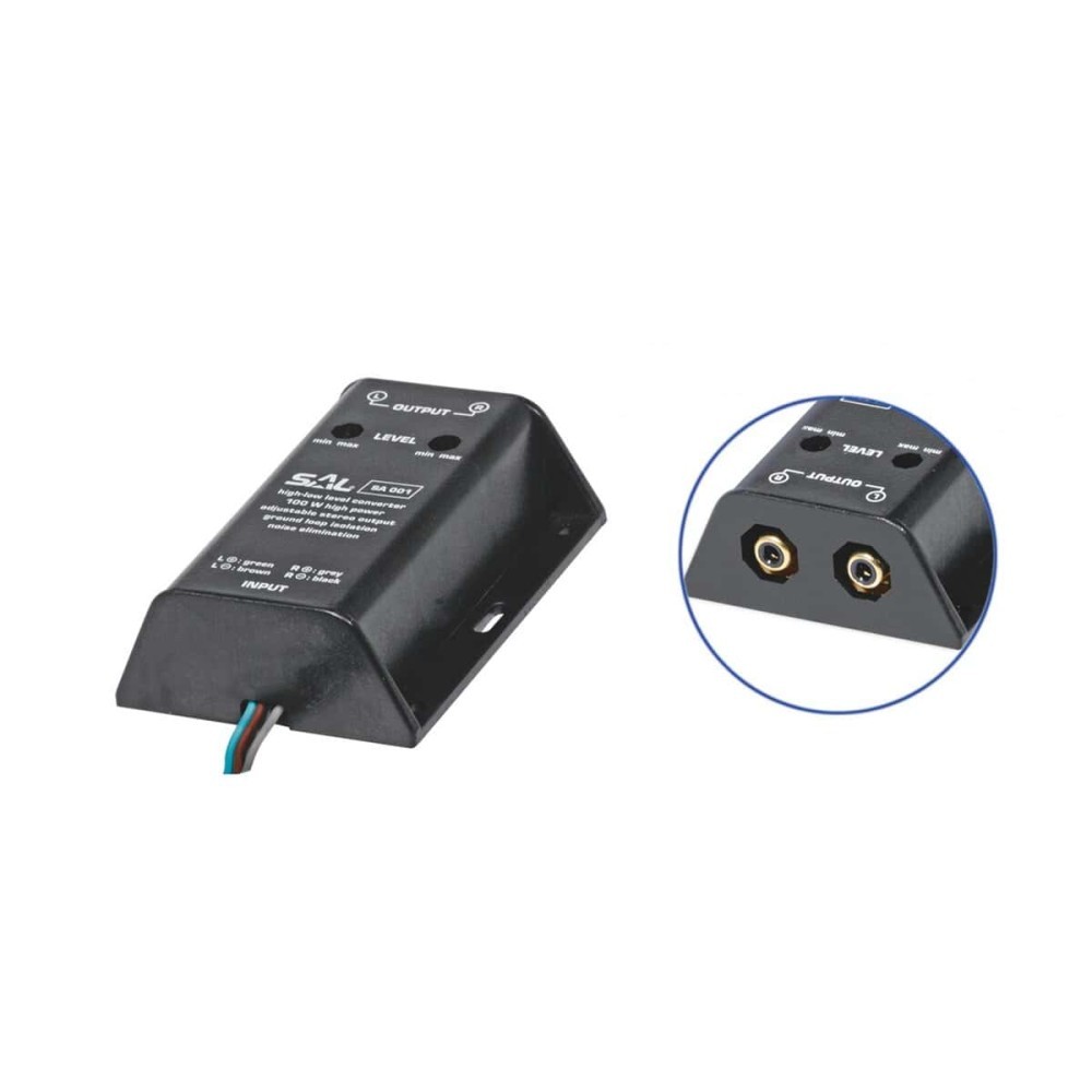 Convertor semnal HI-LOW transforma din iesire pentru difuzor in RCA SAL. • permite conectarea amplificatoarelor cu acele casetofoane auto care nu sunt prevăzute cu conectica necesară • transformarea ieşirii pentru difuzor în RCA • putere max. intrare: 2 x 50 W • gama de frecvenţă: 20 - 35.000 Hz • sensibilitate 60 dB • impedanţă ieşire: 10 kOhm • dimensiuni: 90 x 65 x 27 mm.