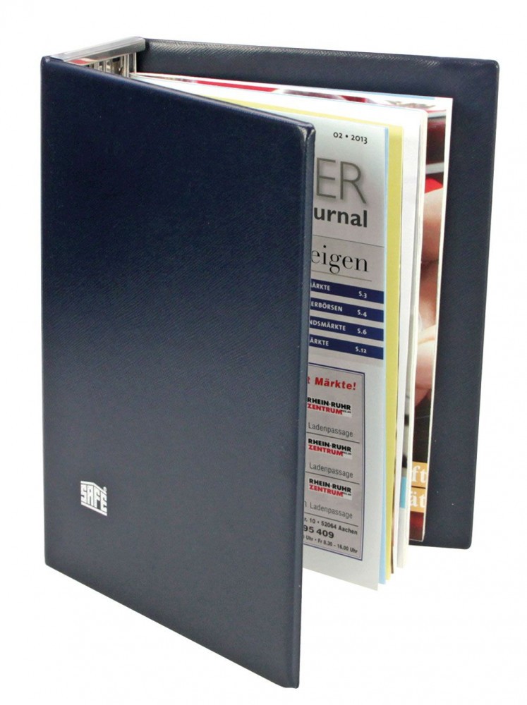 Coperta poate stoca pana la 12 reviste, brosuri, cataloage in format A5. Sistemul de prindere la baza tije de metal. Ooferind o usoara depozitare si totodata rasfoirea revistelor fara a fi scoase din coperta. Acest sistem este un sistem brevetat. Vine la pachet cu 12 tije metalice. Click aici pentru formate A4