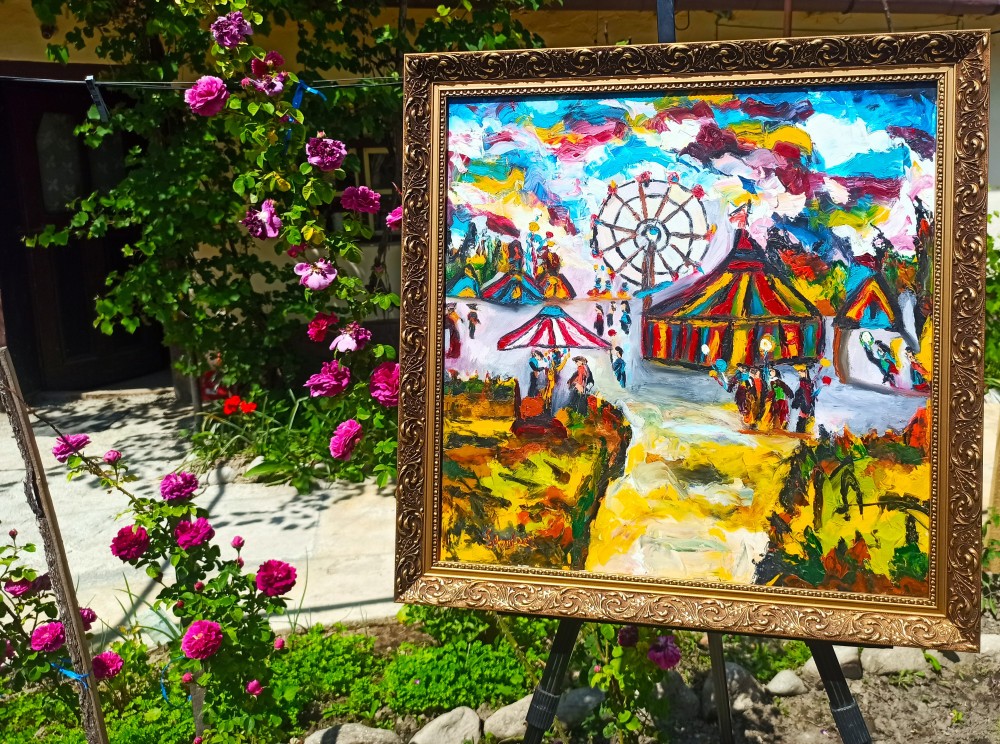 Imaginile sunt realizate recent ,in curte la lumina naturala,pentru a prezenta tabloul pe cat posibil la privire reala.In casa sau la lumina becului,culorile pot aparea ori prea intunecate sau din contra prea luminate fata de realitate sau chiar foarte miscate incat nu se intelege mai nimic din tablou.