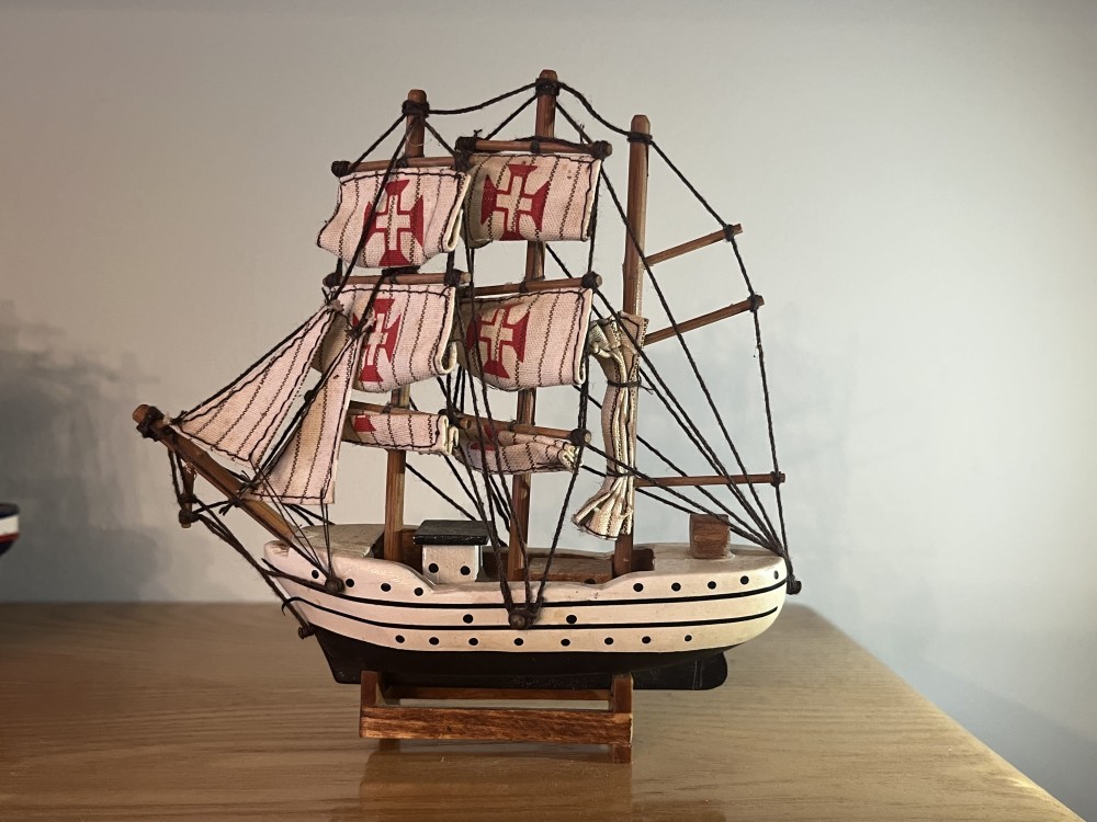 Corabia din imagine. Are 15 cm lungime si 15 cm inaltime.