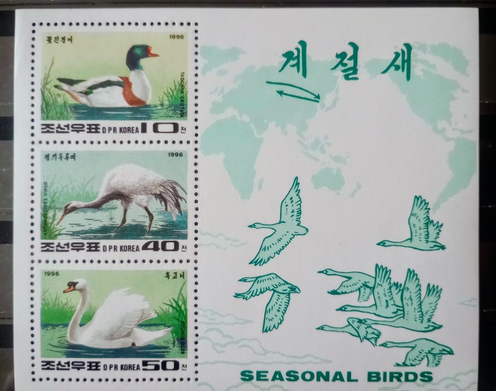 Coreea 1996 pasari migratoare cocor, lebădă , 3v nestampilata,