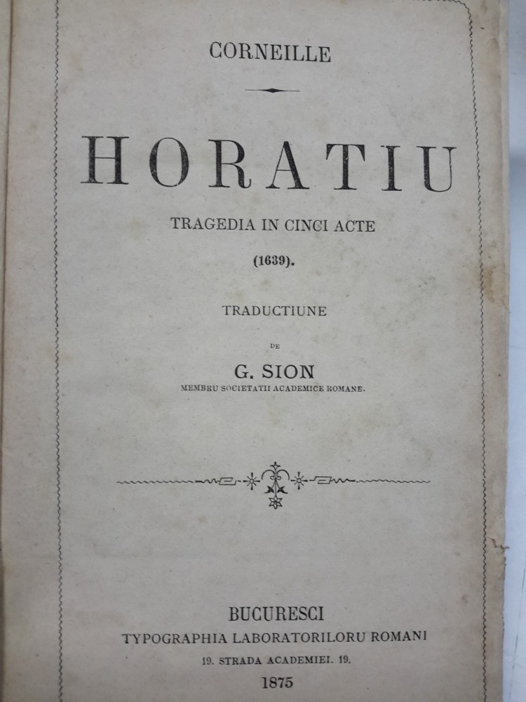 Corneille, HORATIU, Trad. de Gh. Sion, Bucuresti, 1875