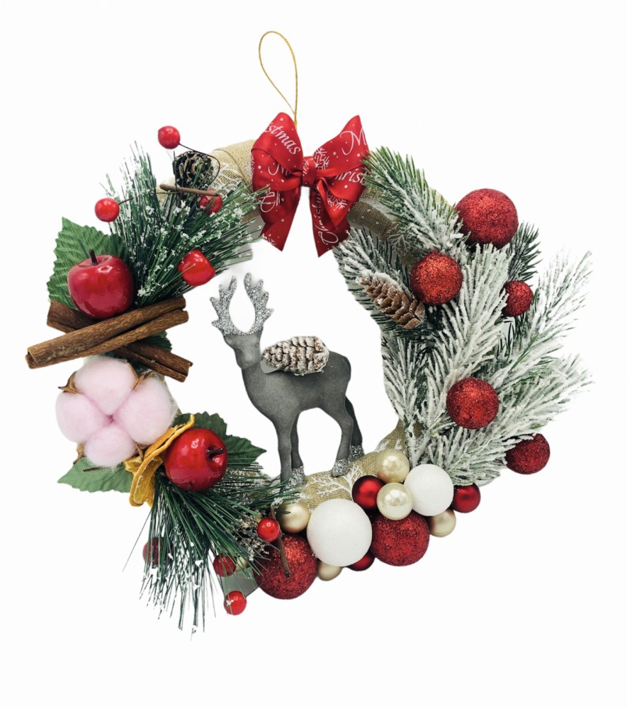 Coronita de craciun, Brad, Globuri, Pourpirri si Ren, Eventissimi, Multicolor, 30 cm